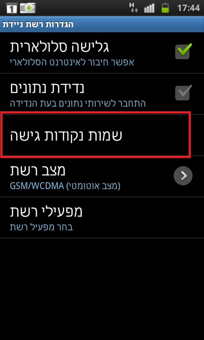 יש לי מכשיר גלקסי 2 ולא הצלחתי להגיע למצב שבכלל צריך לבחור את הAPN